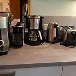 As refeições no quarto são fáceis com comodidades como máquinas de café/chá, enquanto também é possível em uma área de refeições ao ar livre e sala de jantar. A cozinha também dispõe de microondas, chaleira elétrica e refrigerador. Graças à paragem Platte, localizado a 450 metros de distância, os hóspedes podem facilmente explorar Höfen.